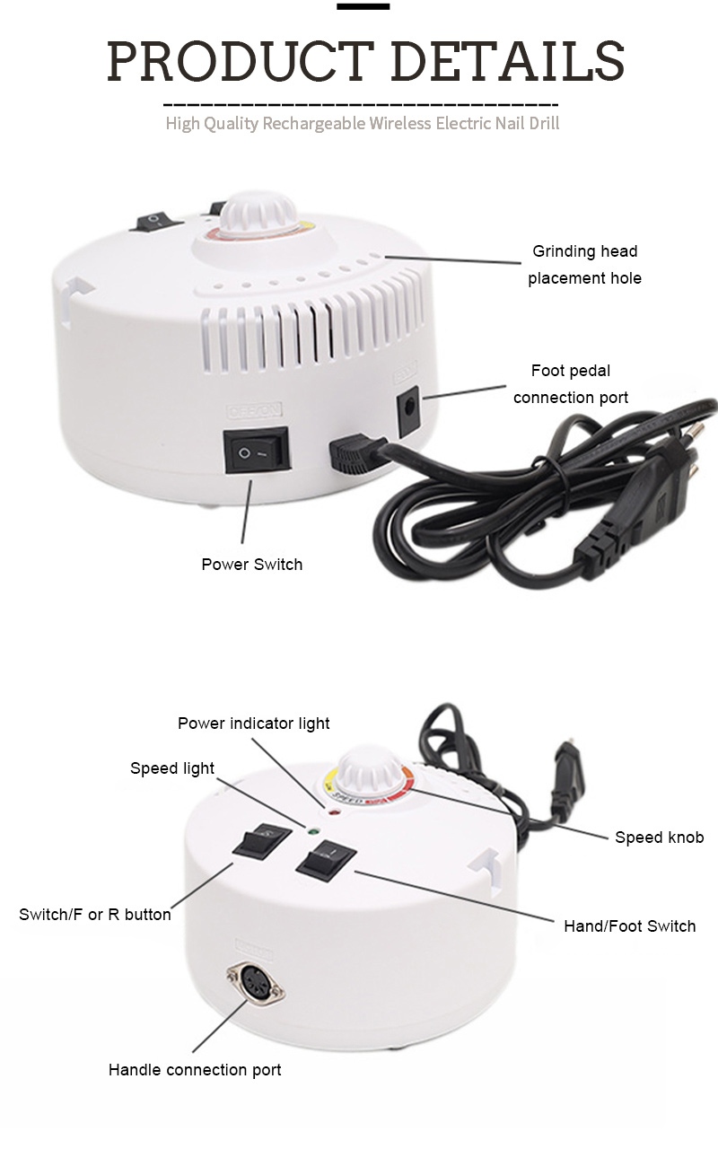 Электрычная дрыль для пазногцяў, якую няпроста пашкодзіць, наканечнік 65 Вт 35000 абаротаў у хвіліну