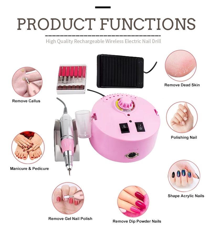 Партатыўны электрычны набор свердзелаў для пазногцяў з магутным рухавіком 65 Вт 35000 абаротаў у хвіліну