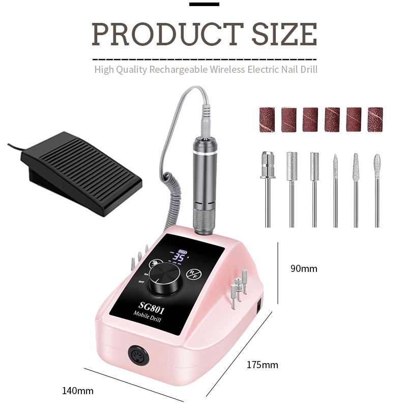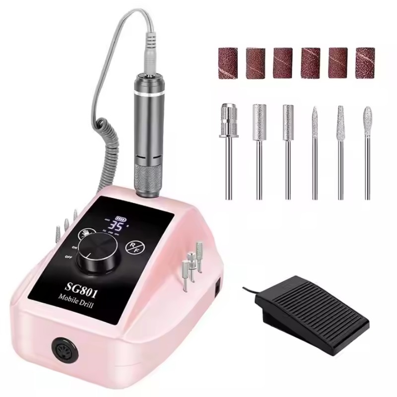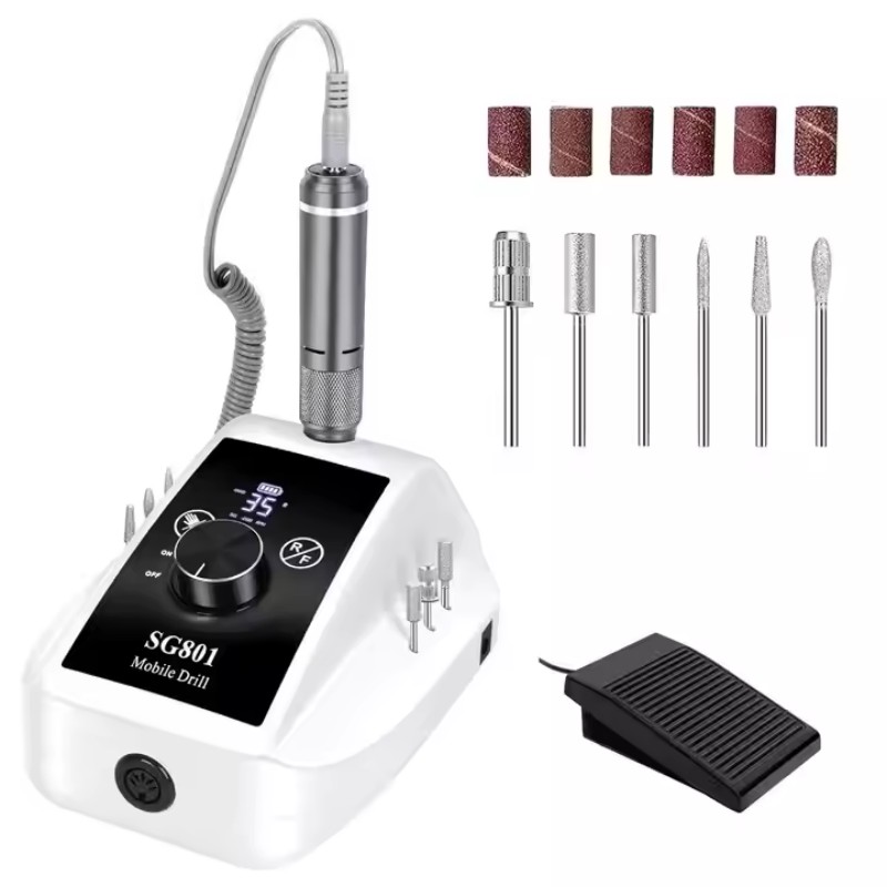 Партатыўны электрычны набор свердзелаў для пазногцяў з магутным рухавіком 65 Вт 35000 абаротаў у хвіліну