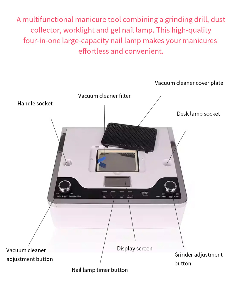Лямпа для сушылкі пазногцяў Пылазборнік 140 Вт 4 у 1