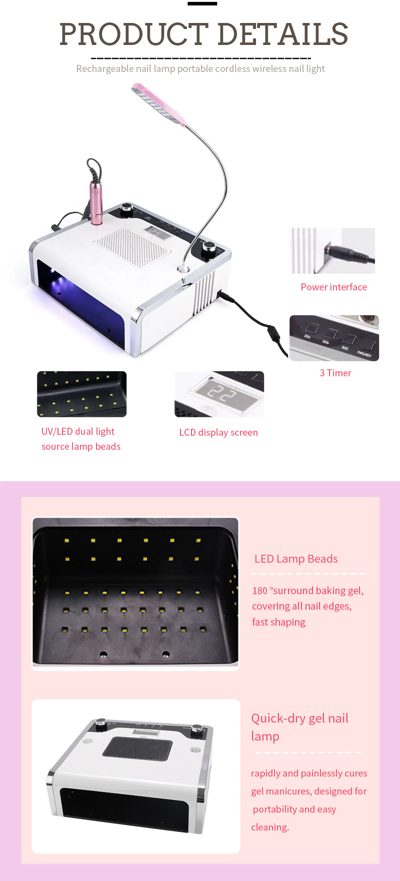 Шматфункцыянальная лямпа для пазногцяў 4 у 1 забяспечвае раўнамернае высыханне клею без усаджвання. Яго падвойныя крыніцы святла забяспечваюць мяккі нагрэў, каб прадухіліць змяненне колеру рук і напружанне вачэй, падыходзяць як для рук, так і для ног, забяспечваючы надзвычай хуткі вынік сушкі.