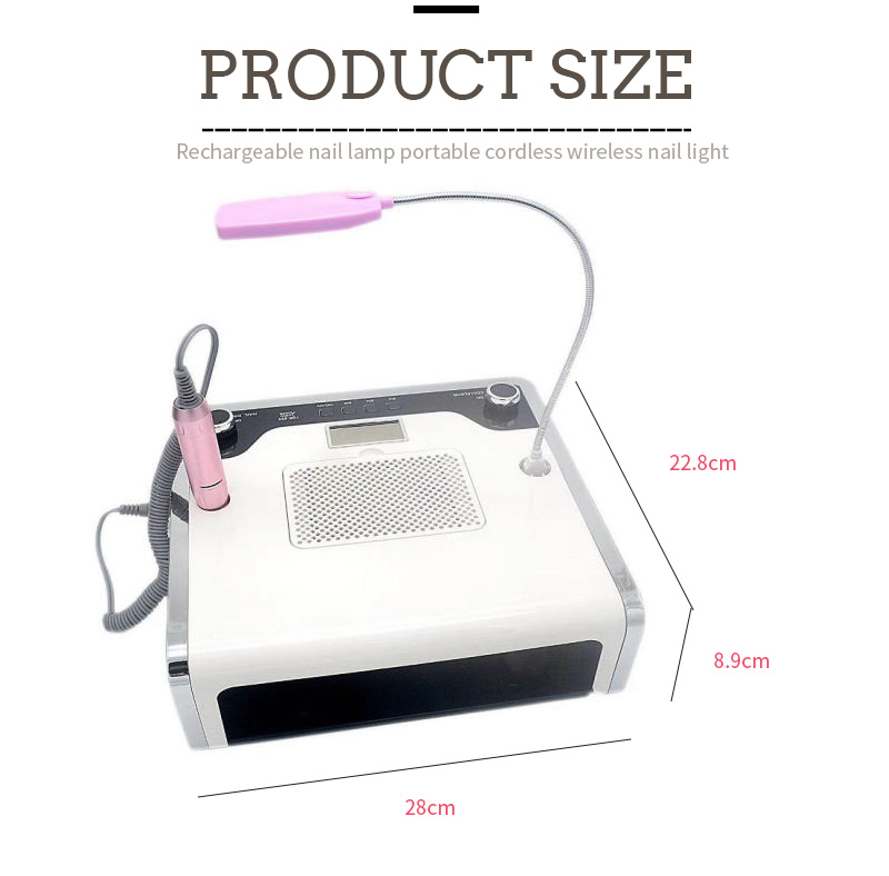Памеры гэтай шматфункцыянальнай лямпы для пазногцяў 4 у 1 складаюць 280 мм у даўжыню, 228 мм у шырыню і 89 мм у вышыню, з вялікай магутнасцю і магчымасцю выкарыстоўваць як рукі, так і ногі, што вельмі зручна.