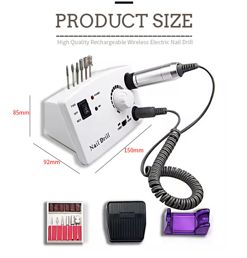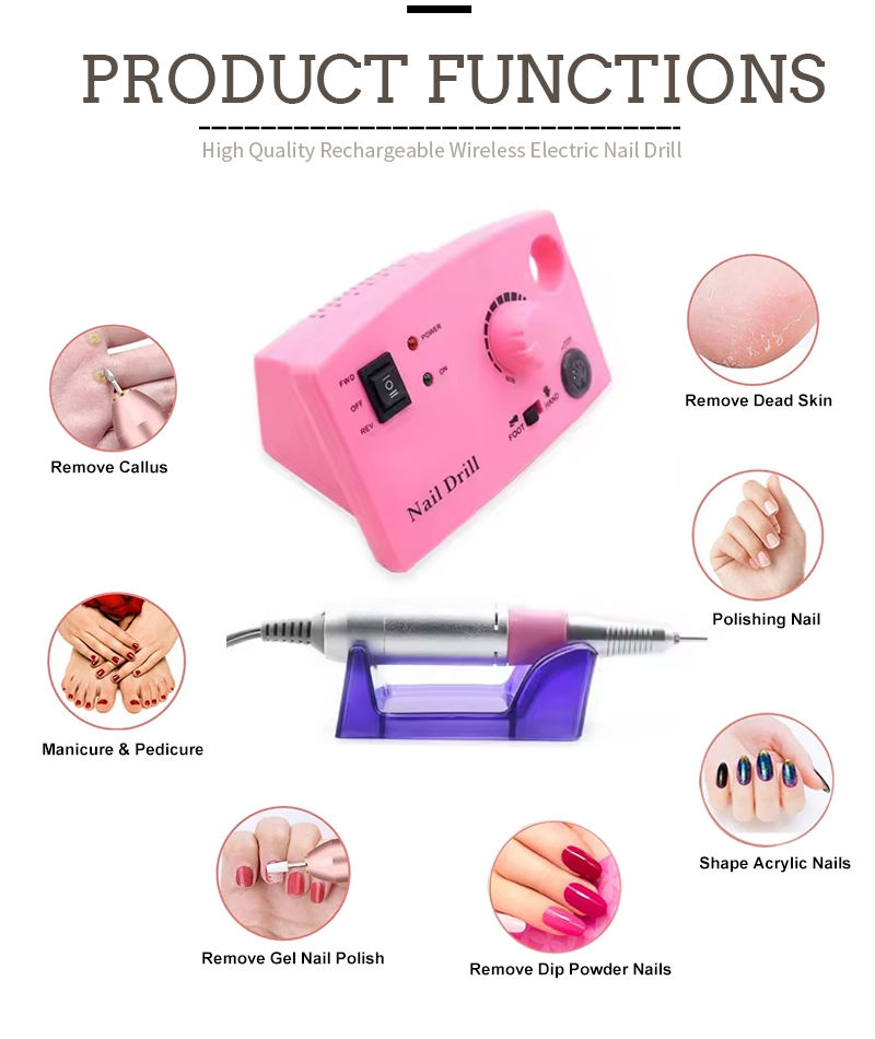 Партатыўны электрычны набор свердзелаў для пазногцяў з магутным рухавіком 65 Вт 35000 абаротаў у хвіліну