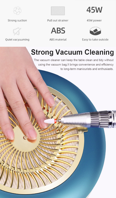 Пылазборнік для пазногцяў магутнасцю 45 Вт Вялікі адсос з фільтрам