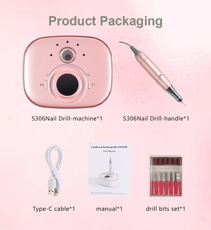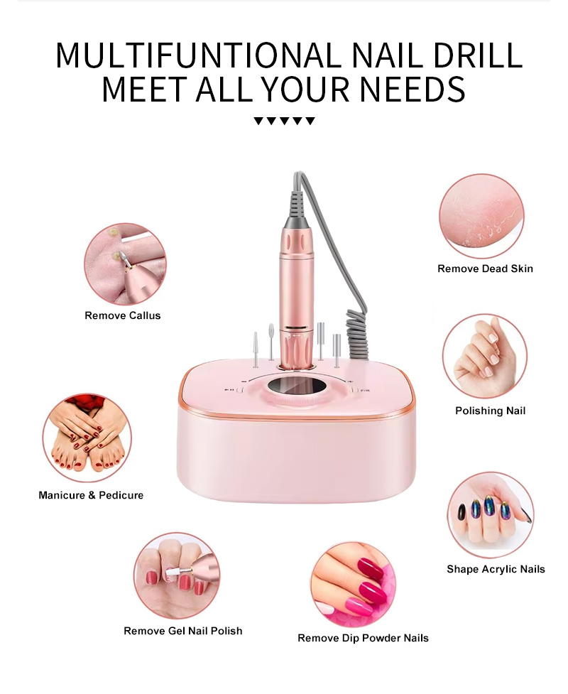 Партатыўны электрычны набор свердзелаў для пазногцяў з магутным рухавіком 65 Вт 35000 абаротаў у хвіліну