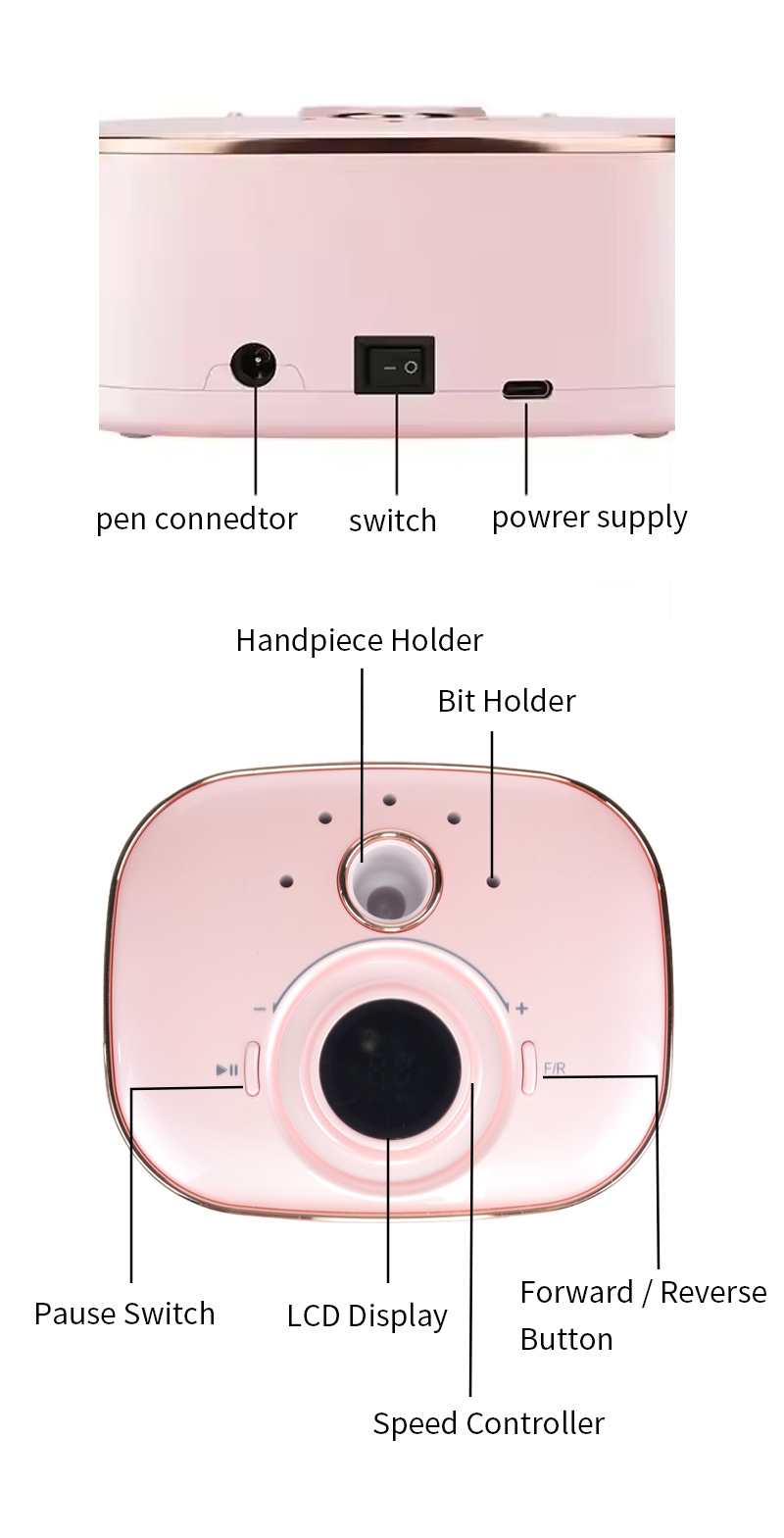 Электрычная дрыль для пазногцяў для зняцця гель-лаку 65 Вт 35000 абаротаў у хвіліну