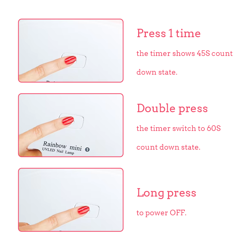 • Святлодыёдныя лямпы высокай магутнасці для хуткага цвярдзення геля за 10 секунд