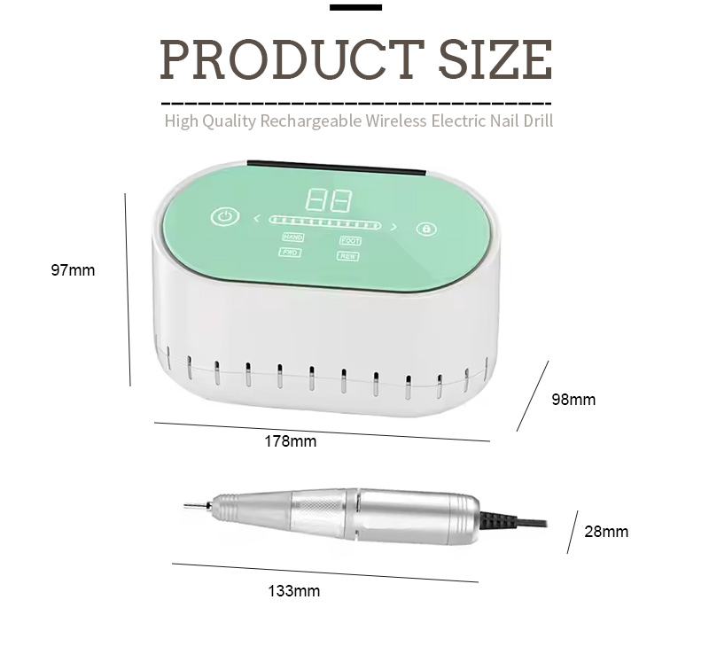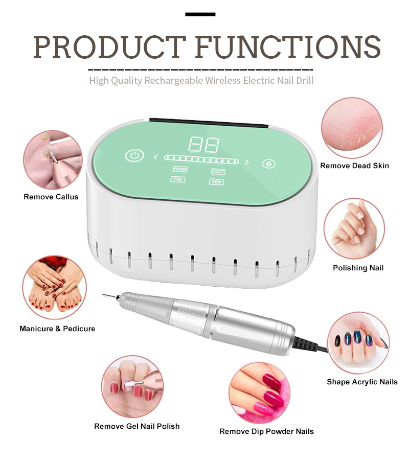 Акумулятарны набор свердзелаў для пазногцяў з магутным наканечнікам 45 Вт 35000 абаротаў у хвіліну