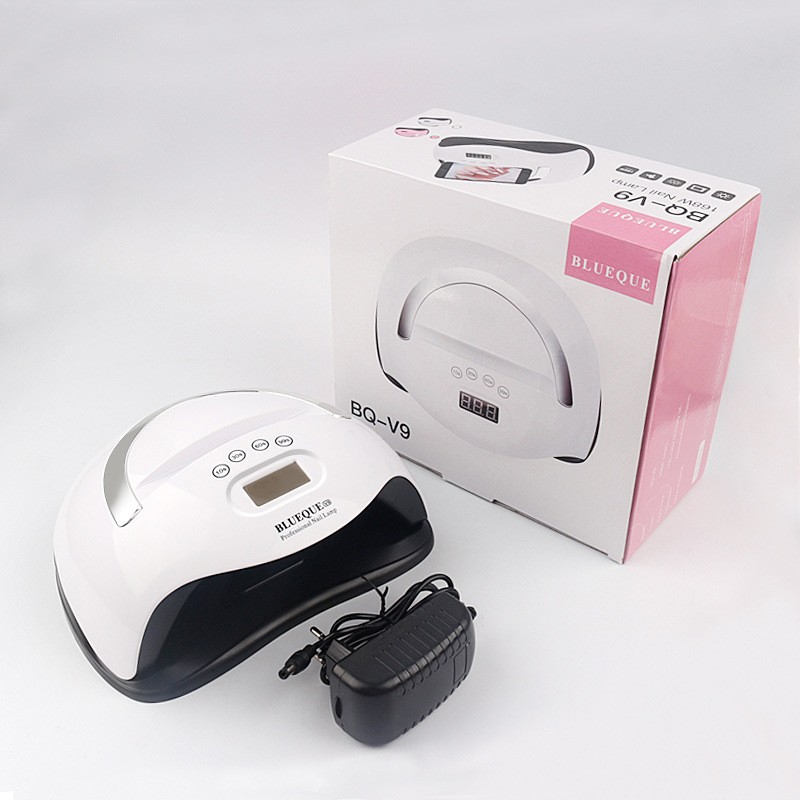 Прадукт высокай магутнасці 168 Вт, выкарыстанне святлодыёдных двайных крыніц святла з залатымі шарыкамі, можа запальваць сухі клей для тэрапіі ультрафіялетавым святлом, клей для нарошчвання і іншыя віды клею для лаку для пазногцяў.