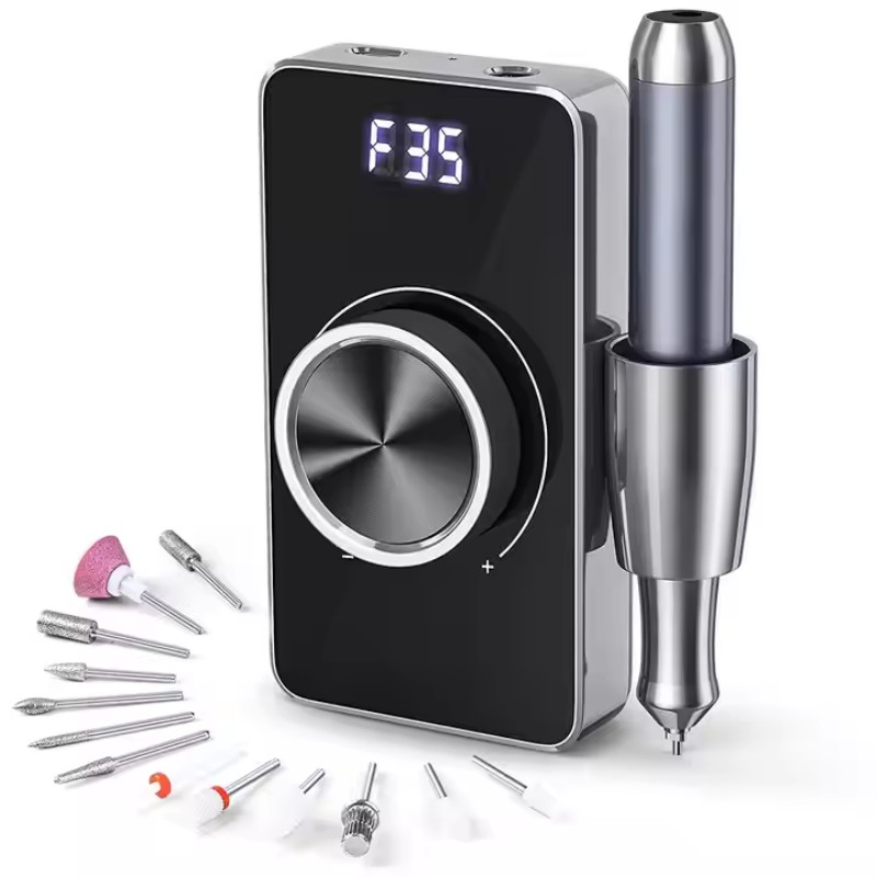 Партатыўны электрычны набор свердзелаў для пазногцяў з магутным рухавіком 65 Вт 35000 абаротаў у хвіліну