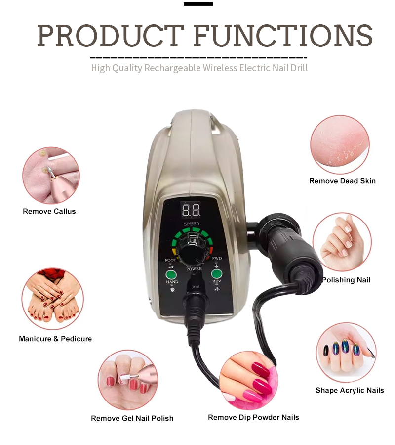 Партатыўны электрычны набор свердзелаў для пазногцяў з магутным рухавіком 65 Вт 35000 абаротаў у хвіліну