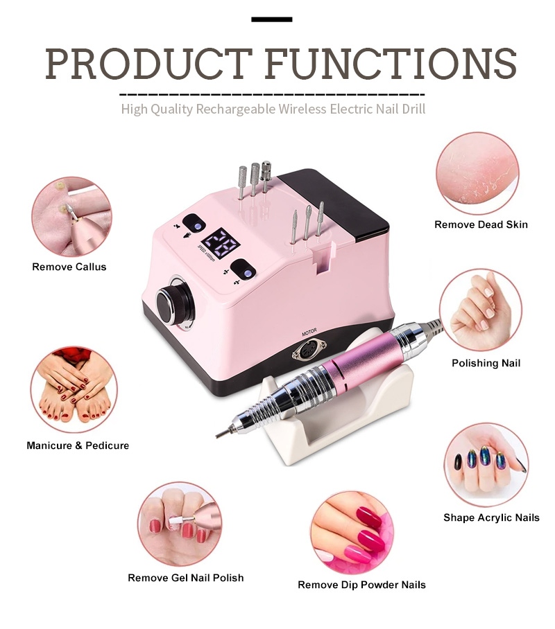 Партатыўны электрычны набор свердзелаў для пазногцяў з магутным рухавіком 65 Вт 35000 абаротаў у хвіліну