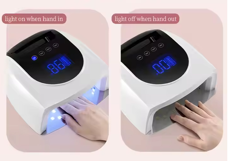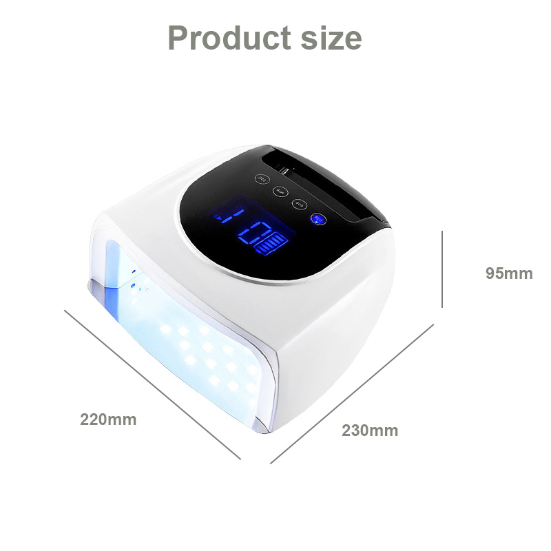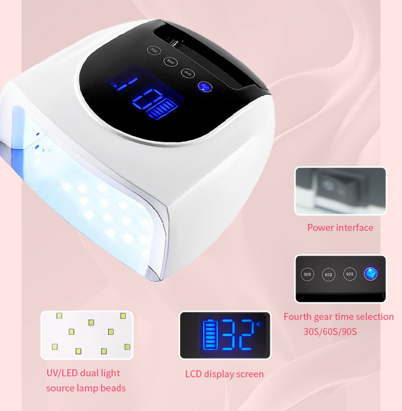 Прадукт забяспечвае раўнамернае высыханне клею без ўсаджвання. Яго двайныя крыніцы святла забяспечваюць мяккі нагрэў, каб прадухіліць змяненне колеру рук і напружанне вачэй, падыходзяць як для рук, так і для ног, забяспечваючы надзвычай хуткі вынік сушкі.