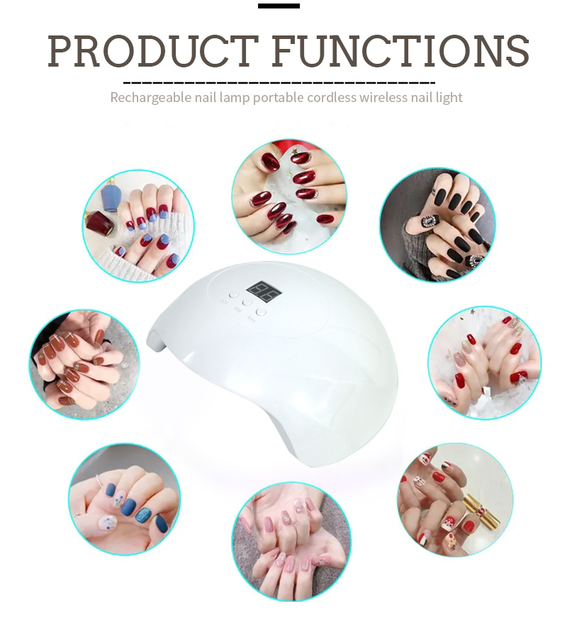 Прадукт забяспечвае нават сушкі клею без усаджвання. Яго падвойныя крыніцы святла забяспечваюць далікатнае ацяпленне, каб прадухіліць змяненне колеру рук і напружанне вачэй, прыдатны для рук, і для ног, даючы надзвычай хуткае вынікі сушкі.