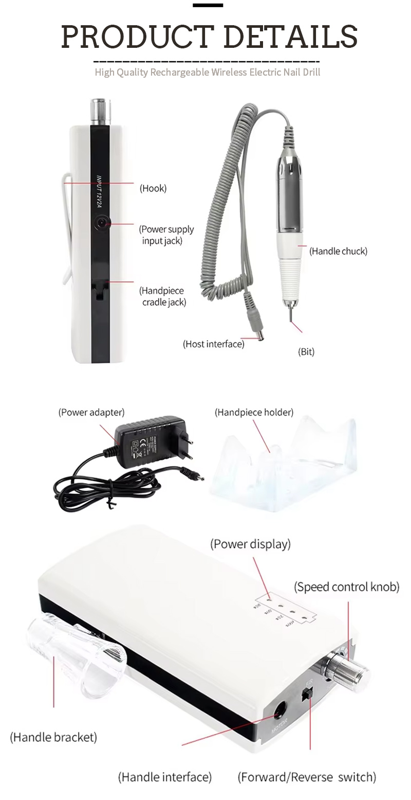 Набор акумулятарных бесправадных дрыляў для пазногцяў Professional 45w 40000rpm