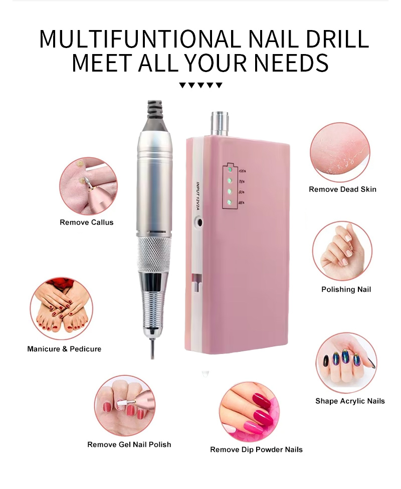 Партатыўны электрычны набор свердзелаў для пазногцяў з магутным рухавіком 65 Вт 35000 абаротаў у хвіліну