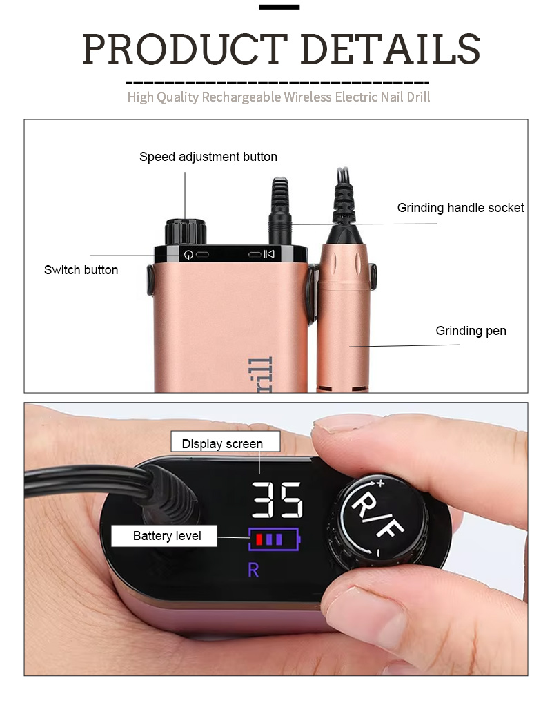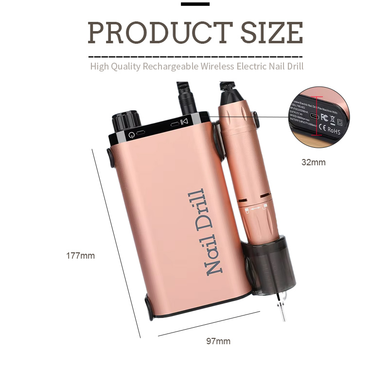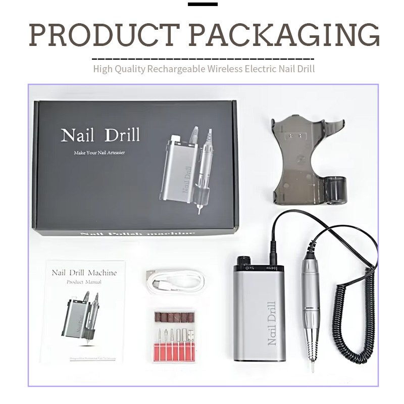 Партатыўны электрычны набор свердзелаў для пазногцяў з магутным рухавіком 65 Вт 35000 абаротаў у хвіліну