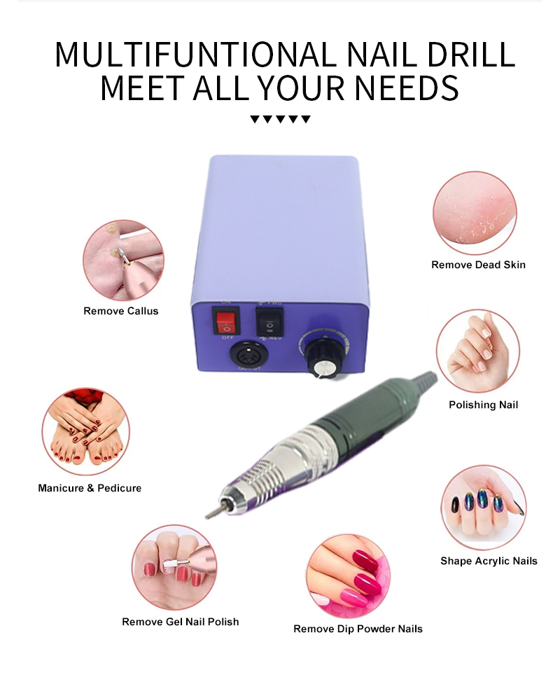 Партатыўны электрычны набор свердзелаў для пазногцяў з магутным рухавіком 65 Вт 35000 абаротаў у хвіліну