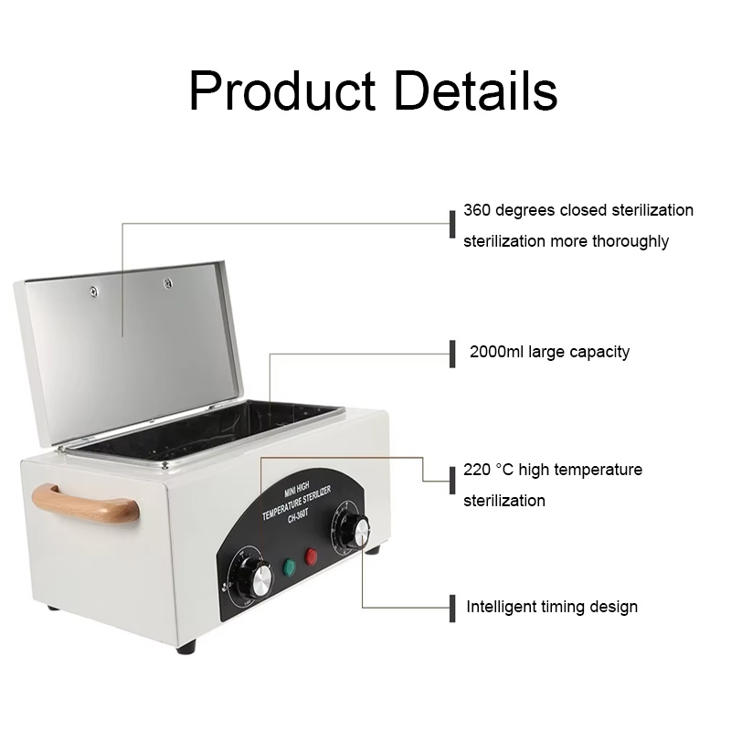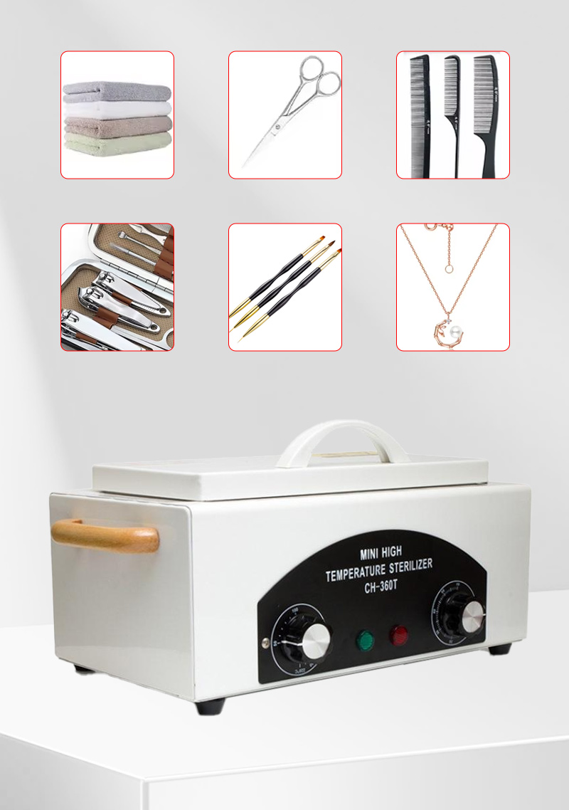 Гэты стэрылізатар у асноўным выпрацоўвае цяпло праз награвальнае кольца, выкарыстоўваючы высокія тэмпературы для дэзінфекцыі.