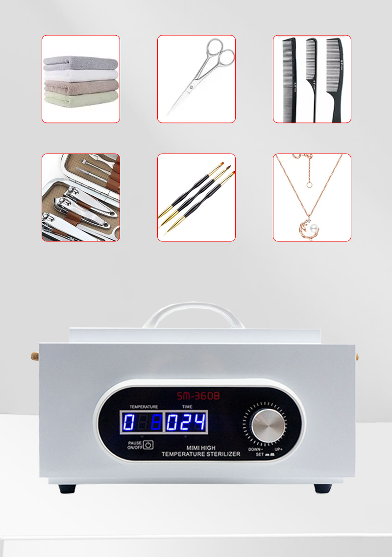 Гэты стэрылізатар у асноўным выпрацоўвае цяпло праз награвальнае кольца, выкарыстоўваючы высокія тэмпературы для дэзінфекцыі.