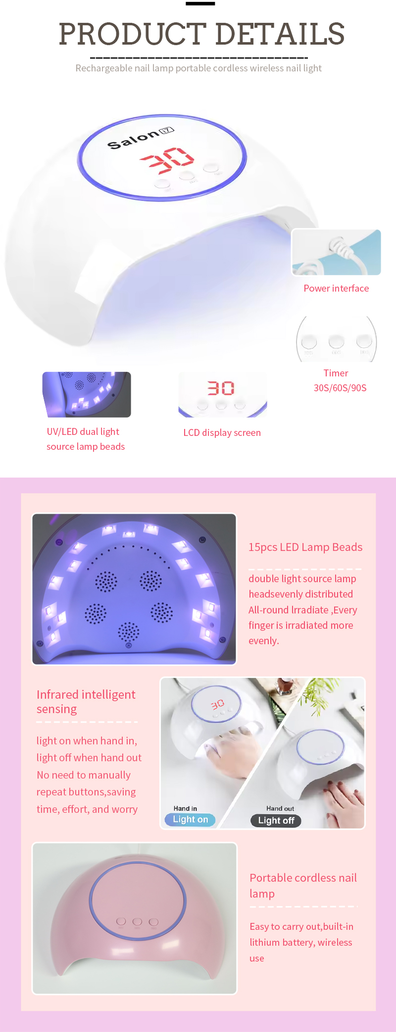 Партатыўная лямпа для сушылкі для пазногцяў белага хуткага зацвярдзення магутнасцю 80 Вт