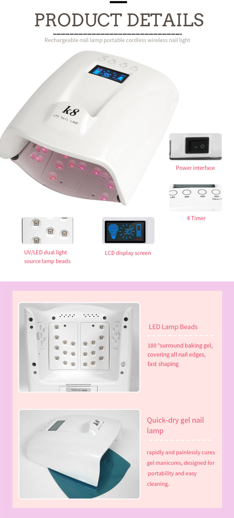 Акумулятарная сушылка для пазногцяў УФ-лямпа для пазногцяў 72 Вт