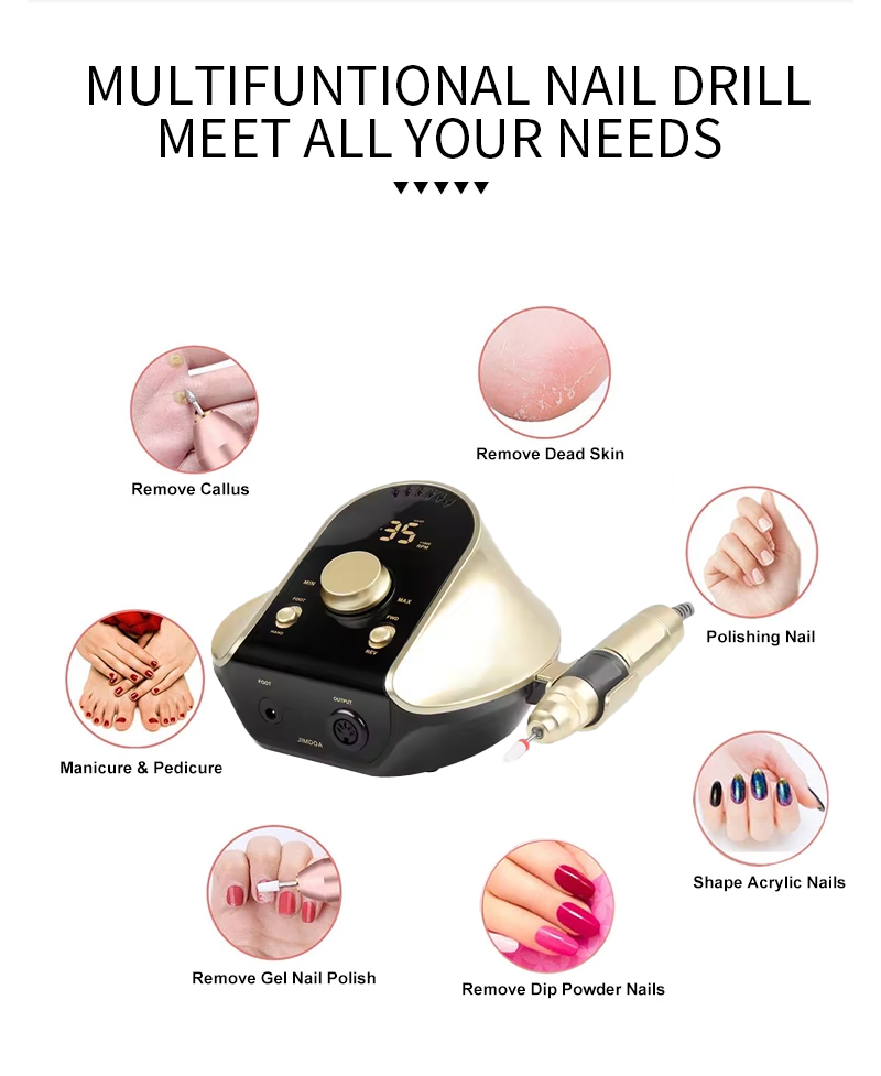 Партатыўны электрычны набор свердзелаў для пазногцяў з магутным рухавіком 65 Вт 35000 абаротаў у хвіліну