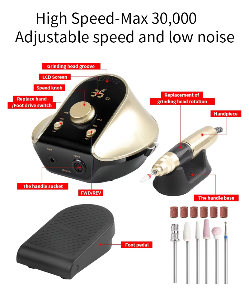 Электрычная дрыль для пазногцяў для зняцця гель-лаку 65 Вт 35000 абаротаў у хвіліну