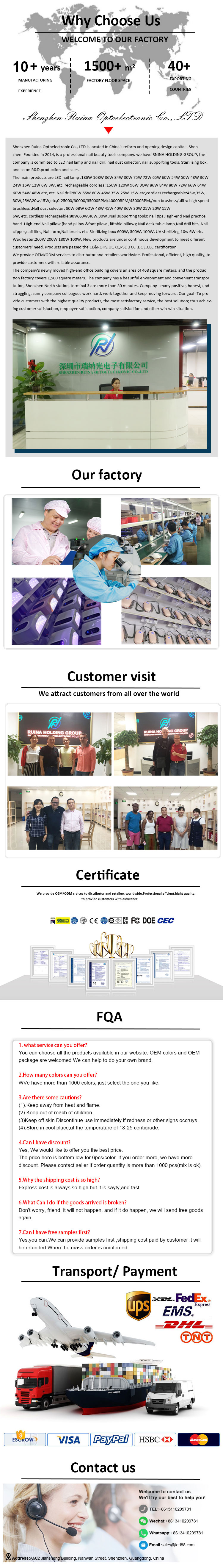 Новы стыль выгнутая галава пазногця для пазногцяў для пазногцяўКампанія Shenzhen Ruina Optoelectronic Co.,Ltd. вядучы кітайскі вытворца, пастаўшчык і экспарцёр новых гелевых пазногцяў прэміум-класа. Мы прытрымліваемся імкнення да ідэальнай якасці прадукцыі, так што наша новая дрыль для гелевых пазногцяў прэміум-класа была задаволена многімі кліентамі. Экстрэмальны дызайн, якасная сыравіна, высокая прадукцыйнасць і канкурэнтаздольная цана - гэта тое, чаго хоча кожны кліент, і гэта таксама тое, што мы можам прапанаваць вам. Вядома, таксама важным з'яўляецца наша ідэальнае пасляпродажнае абслугоўванне.