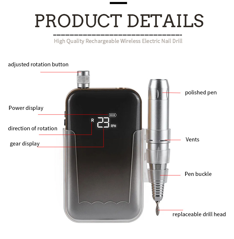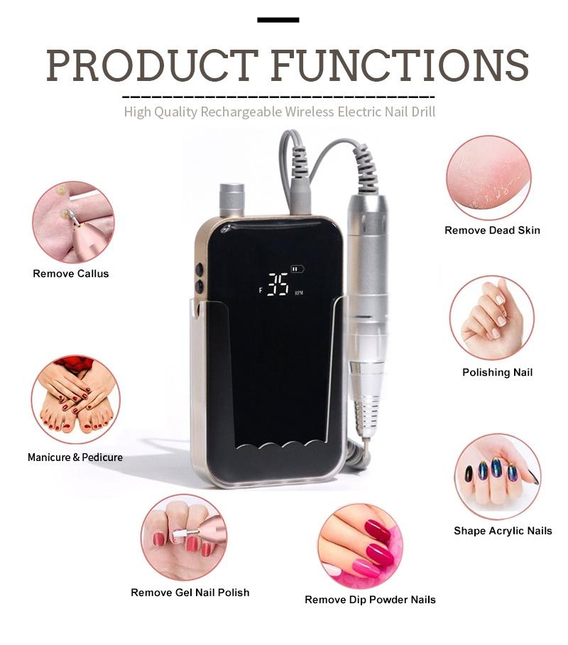 Партатыўны электрычны набор свердзелаў для пазногцяў з магутным рухавіком 65 Вт 35000 абаротаў у хвіліну