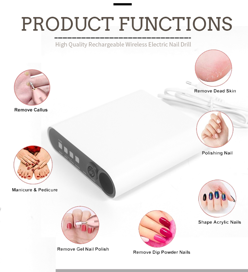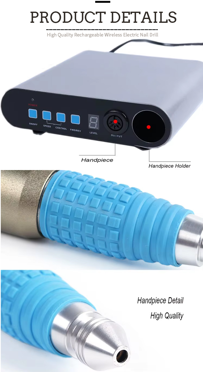 Партатыўны электрычны набор свердзелаў для пазногцяў з магутным рухавіком 65 Вт 35000 абаротаў у хвіліну