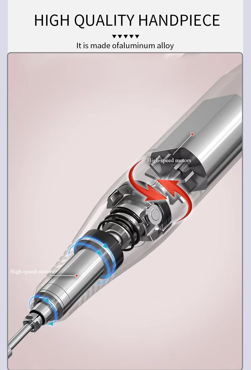 Партатыўны электрычны набор свердзелаў для пазногцяў з магутным рухавіком 65 Вт 35000 абаротаў у хвіліну