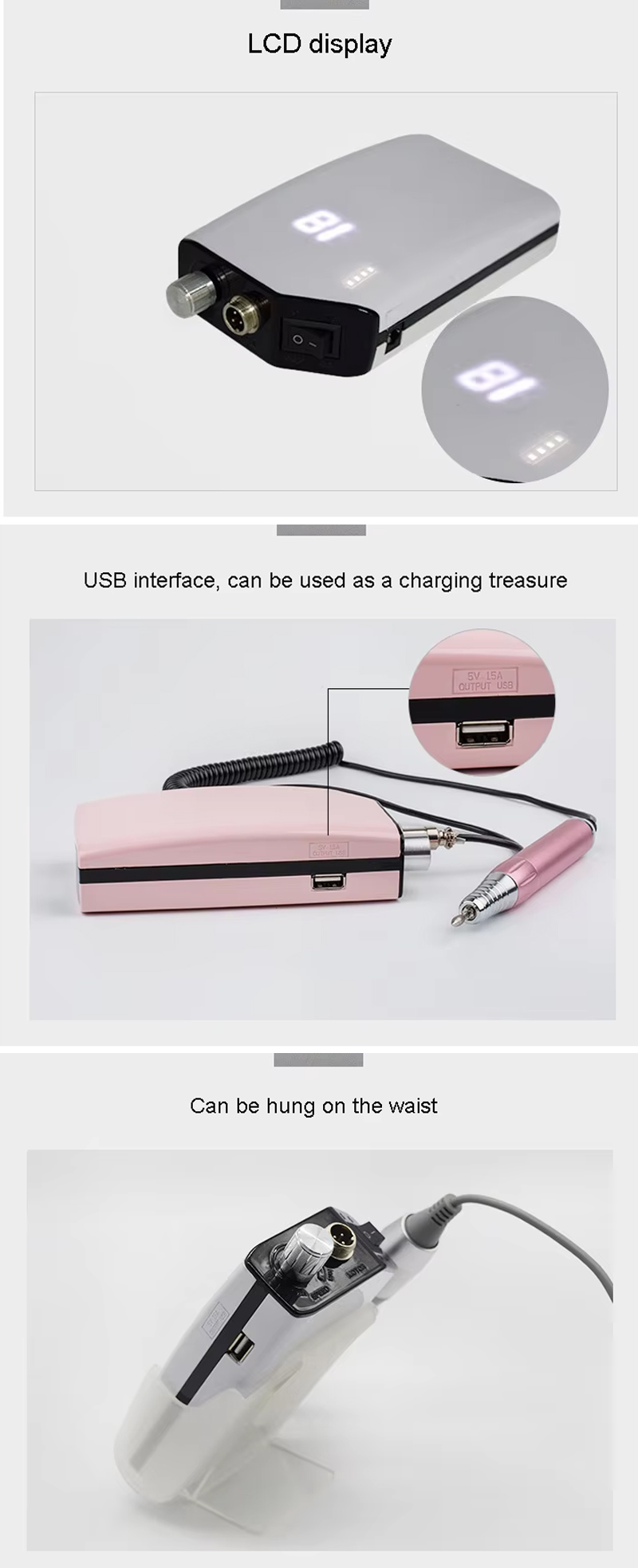 Партатыўны электрычны набор свердзелаў для пазногцяў з магутным рухавіком 65 Вт 35000 абаротаў у хвіліну