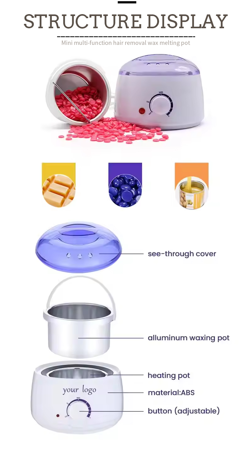 - Падыходзіць для ўсіх тыпаў воску: цвёрдая эпіляцыя, эпіляцыя паласой, парафінавая эпіляцыя