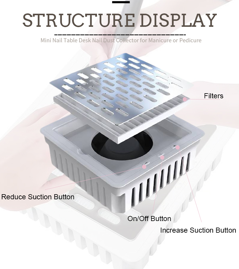 Пылазборнік для пазногцяў магутнасцю 45 Вт Вялікі адсос з фільтрам