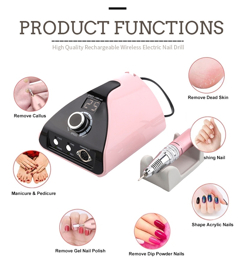 Партатыўны электрычны набор свердзелаў для пазногцяў з магутным рухавіком 65 Вт 35000 абаротаў у хвіліну