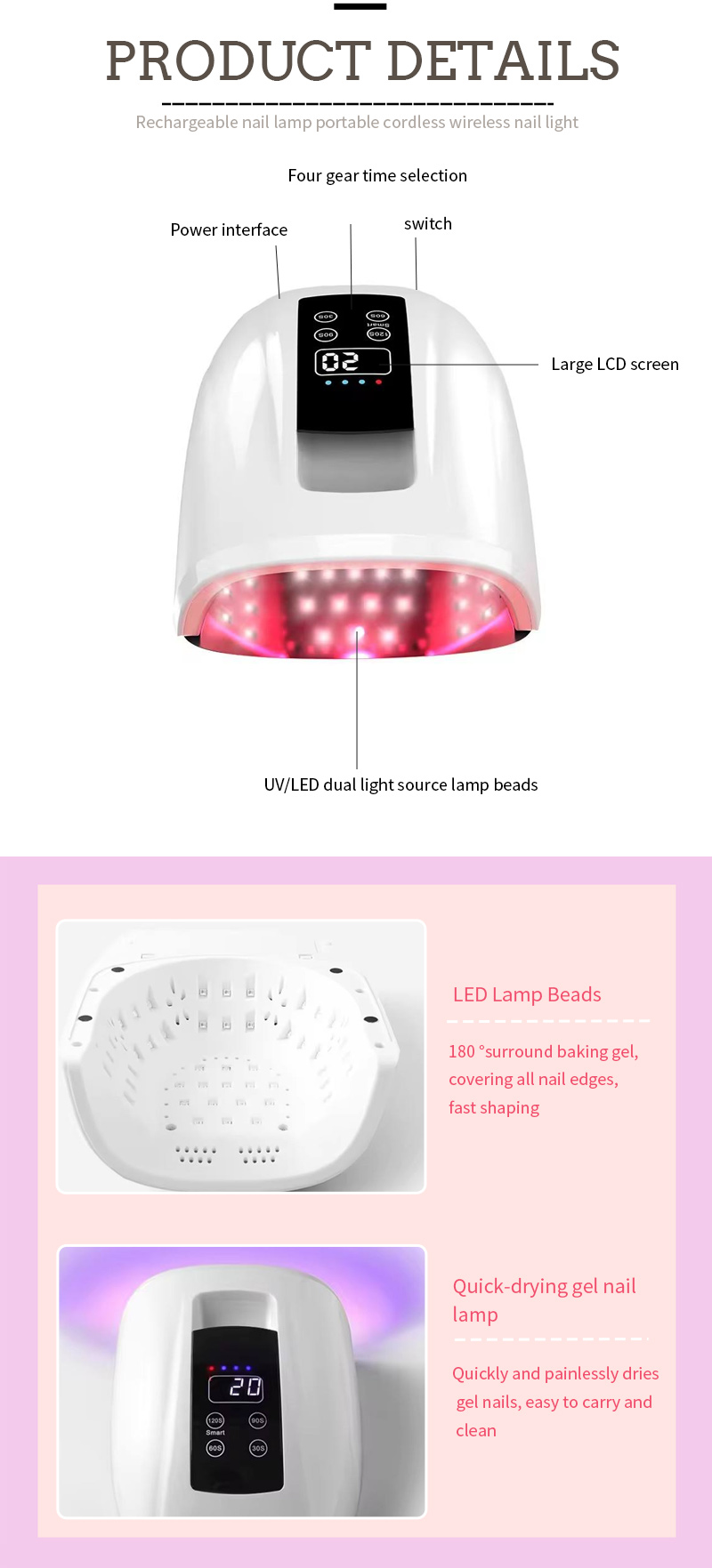 Партатыўная лямпа для сушылкі для пазногцяў белага хуткага зацвярдзення магутнасцю 80 Вт