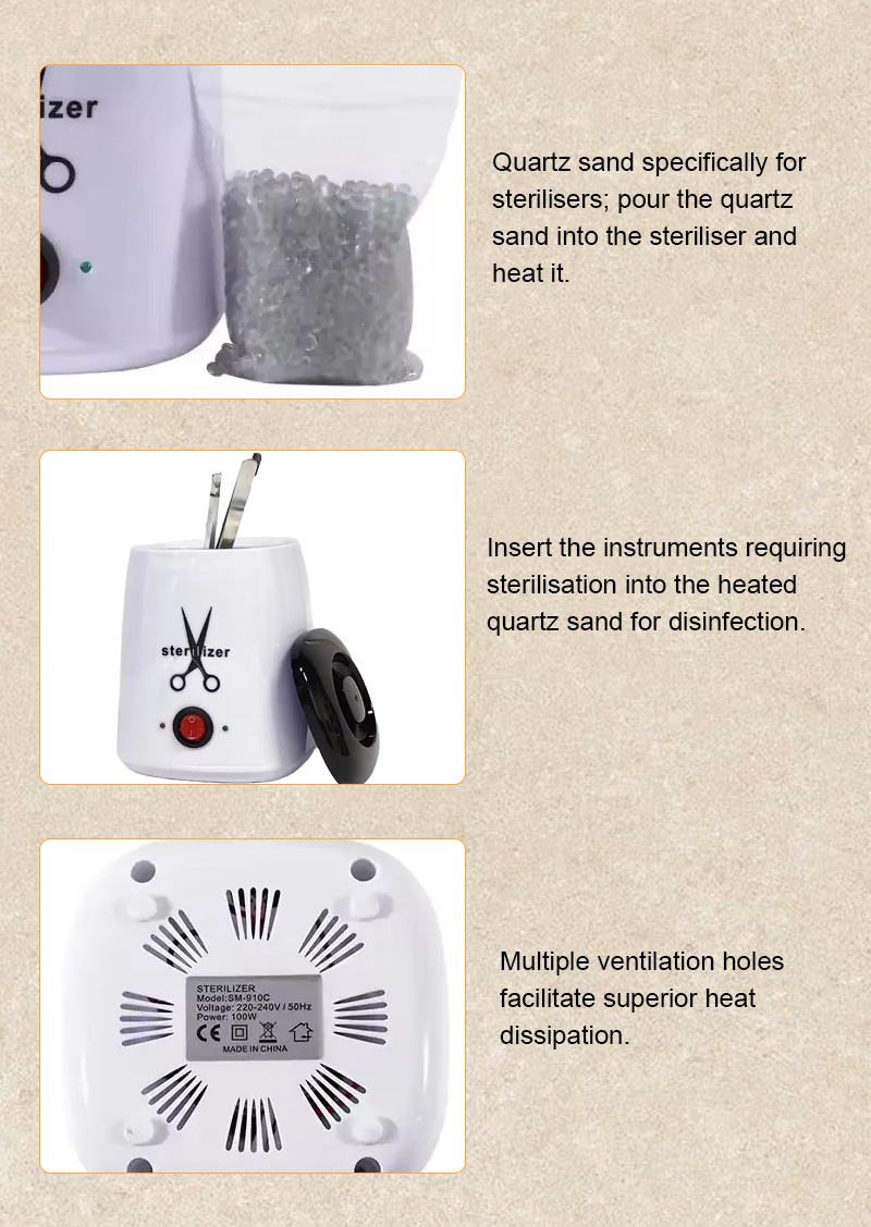 Гэты стэрылізатар у асноўным выпрацоўвае цяпло праз награвальнае кольца, выкарыстоўваючы высокія тэмпературы для дэзінфекцыі.