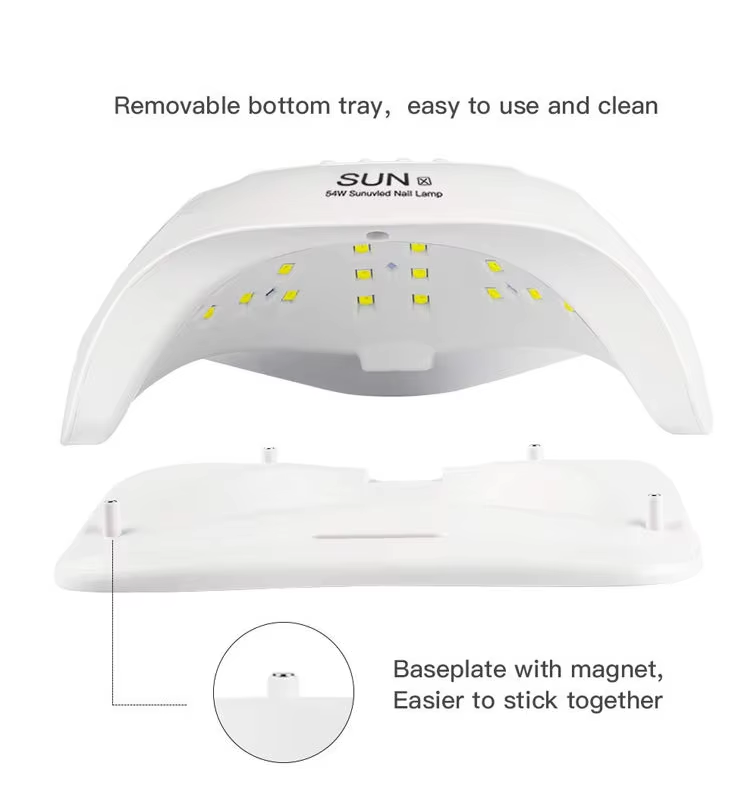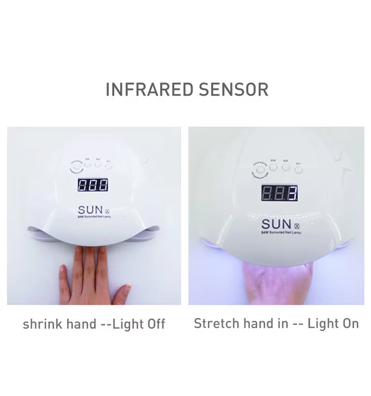 Лямпа для хуткасохлых гелевых пазногцяў мае інфрачырвоную разумную тэхналогію, якая аўтаматычна загараецца, калі рукі набліжаюцца, і выключаецца, калі рукі адыходзяць, пазбаўляючы ад шматразовага націскання кнопак і эканомячы час і намаганні. Моцны клей для выпечкі не патрабуе доўгага чакання, што дазваляе зэканоміць час і сілы.
