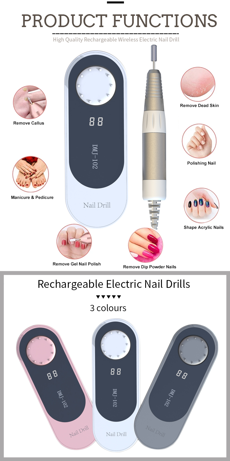 Партатыўны электрычны набор свердзелаў для пазногцяў з магутным рухавіком 65 Вт 35000 абаротаў у хвіліну
