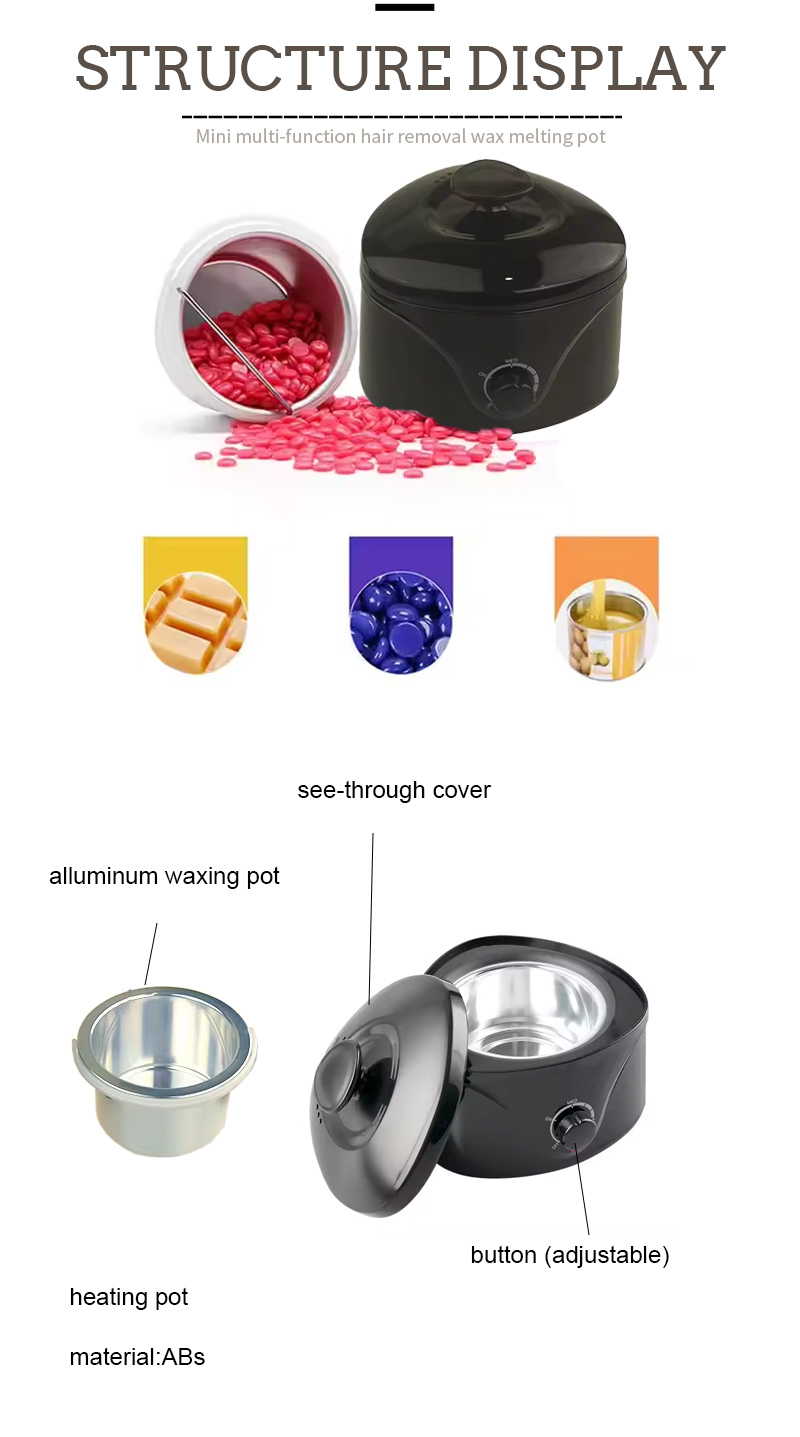 Вялікая ёмістасць для расплаўлення шырокага спектру васковых бабоў. Пластыкавы корпус з АБС, устойлівы да высокіх тэмператур, больш глянцавы.