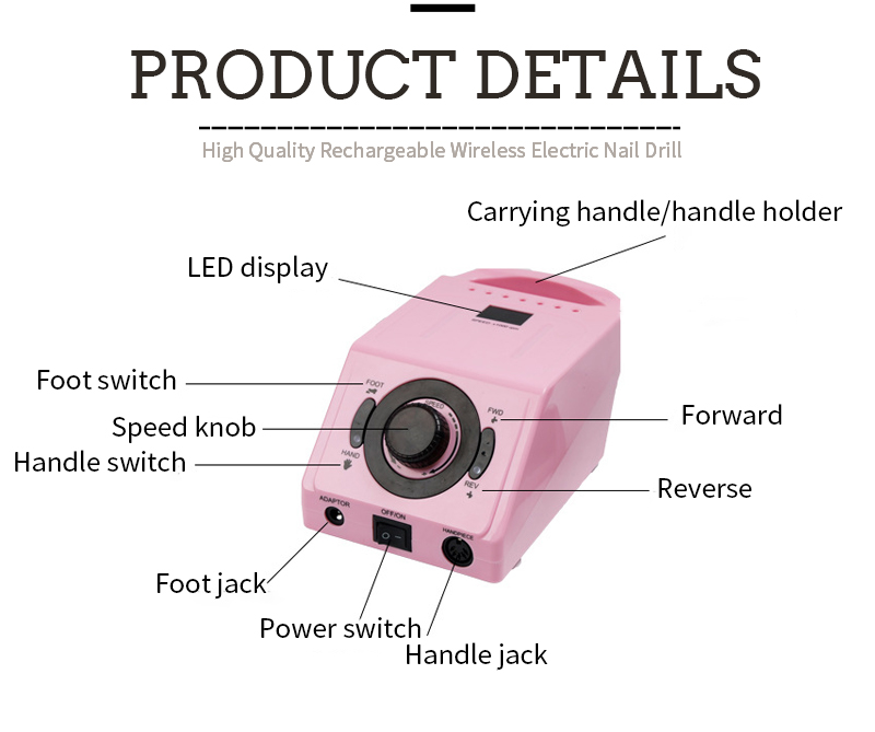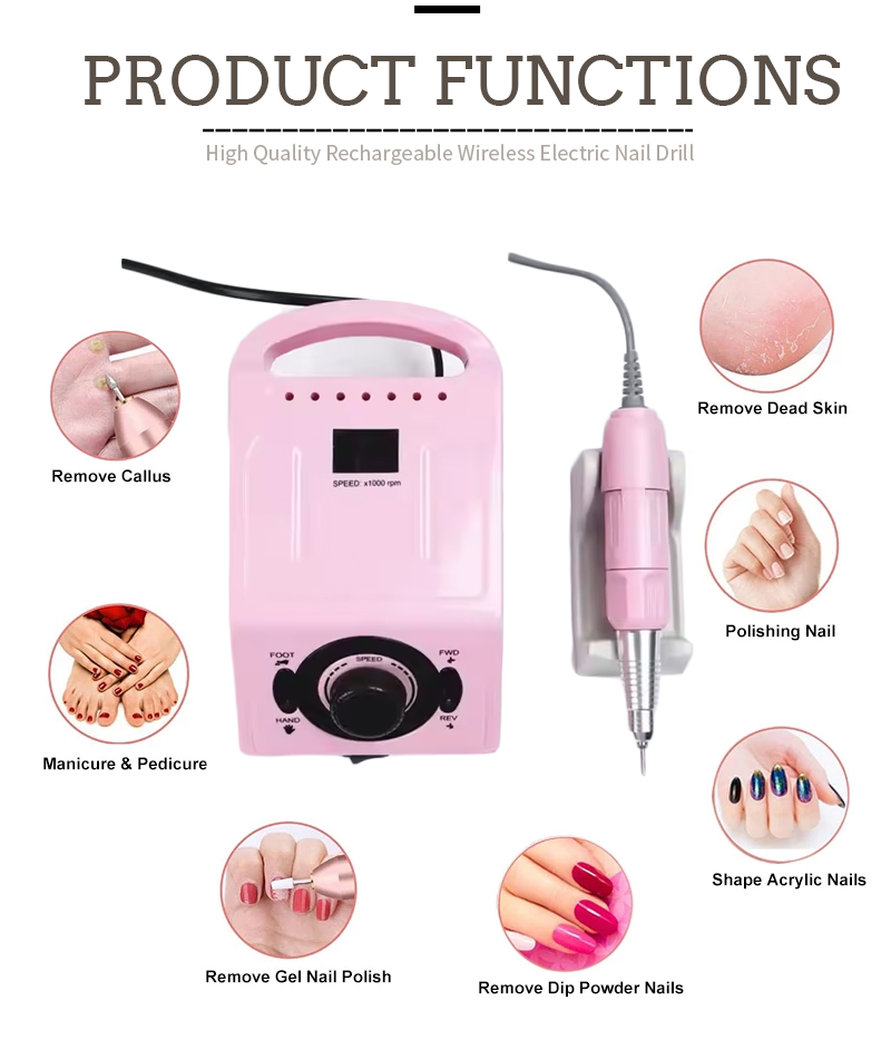 Партатыўны электрычны набор свердзелаў для пазногцяў з магутным рухавіком 65 Вт 35000 абаротаў у хвіліну